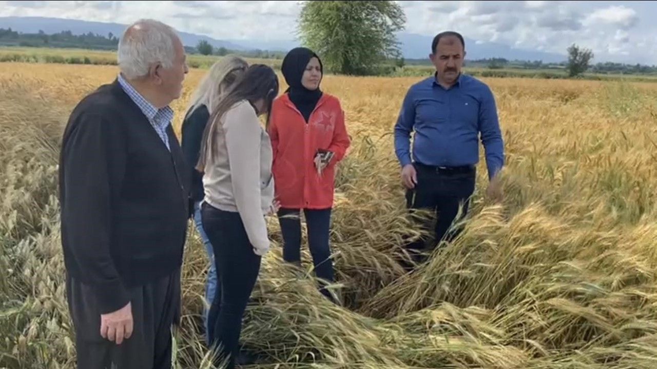 Ürünlerinin bu sene çok verimli olduğunu ama yağmur sonrası zarar gördüğünü söyleyen çiftçi Mehmet İşlek, "Hasat yapacaktık buğdaylarımız yağmur nedeniyle yattı zarar gördü. Zararımız büyük buğday kalmadı gibi bir şey yarısı zarar gördü. Buğdaylarımız çok güzeldi başağı da çok büyük ve verimliydi ama zarar gördü" dedi.