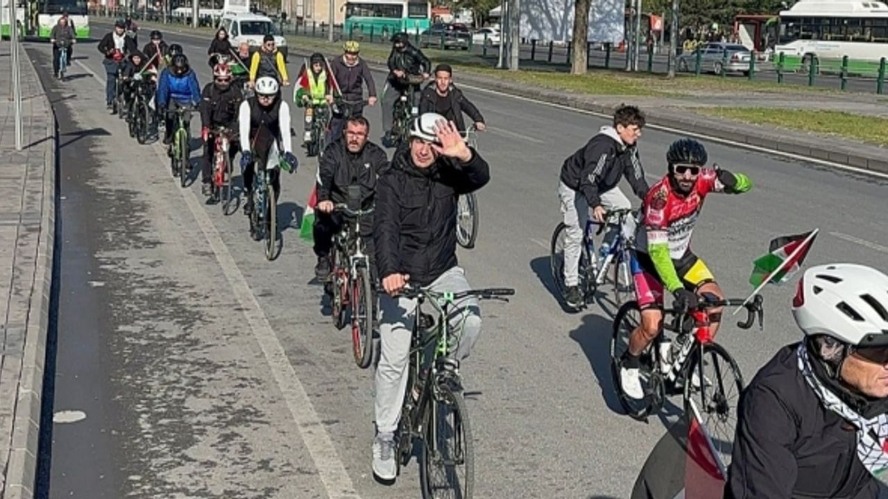 Filistin halkına destek verip, İsrail’i protesto eden bisiklet turuna çok sayıda bisikletli destek verdi.