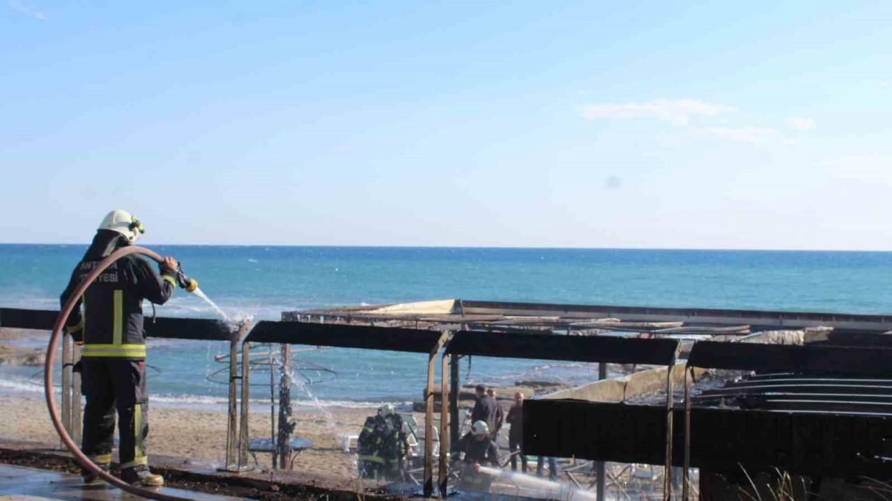 Yangın, saat 16.00 sıralarında Tosmur Mahallesi’nde plajda bulunan bir büfede çıktı. Edinilen bilgiye göre, büfede bilinmeyen bir nedenle yangın çıktı. Çevredeki vatandaşların ihbarı üzerine bölgeye itfaiye ve polis ekipleri sevk edildi. İtfaiye ekipleri yangını kısa sürede söndürürken, büfede maddi hasar meydana geldi. Olayla ilgili inceleme başlatıldı.