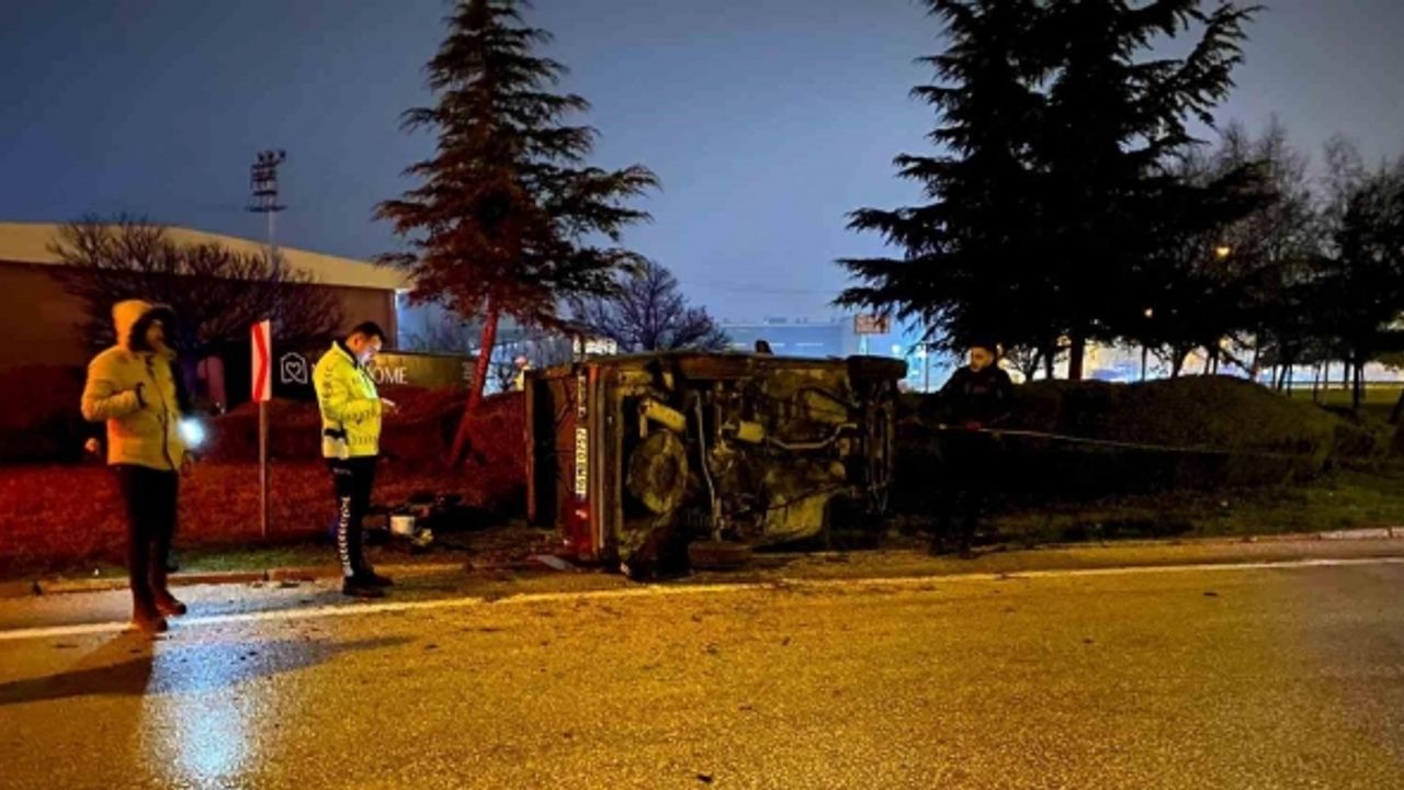 Bursa’nın İnegöl ilçesinde meydana gelen kazada orta refüje giren otomobil takla atıp yan durdu, aracın sürücüsü yaralandı.