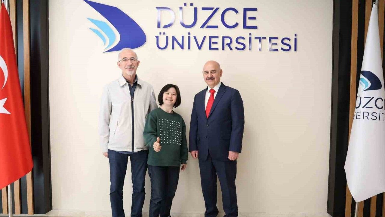 Engelliler Haftası çerçevesinde görüş ve önerilerin paylaşıldığı programda Rektör Nedim Sözbir; Dünya Üçüncüsü olarak Trisome Games Antalya 2024’de Master 1 alanında ülkemize ilk kez madalya kazandıran, alanında en fazla milli olan milli yüzücümüz Düzce Üniversitesi Spor Bilimleri Fakültesi öğrencisi Fatma Çağla Demir ile bir süre sohbet ederek, engelleri aşan ve bizleri gururlandıran başarısından dolayı tebrik etti.