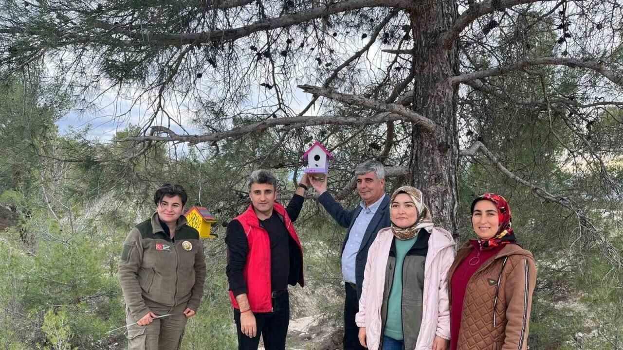 Mersin’de gençlerin boyadığı rengarenk kuş yuvaları, kuşlara yuva olması için ormanlık alandaki ağaçlara yerleştirildi.