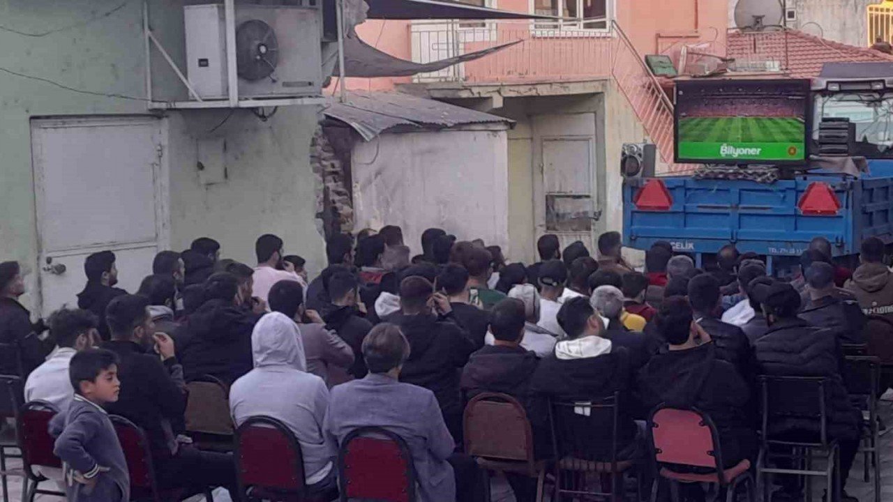Erzincan’ın Tercan ilçesinde vatandaşlar, Galatasaray-Fenerbahçe derbisini traktör römorku üzerine kurulan televizyondan izlediler.