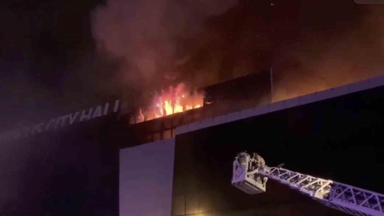 Konser alanın giren saldırganların yanıcı maddeyle binayı ateşe vermesinin ardından yangın çıktı. Crocus Belediye Binası’ndaki 12 bin 900 metrekarelik alanı kaplayan ve binanın çatı kısmının da çökmesine neden olan yangın 01.00 sıralarında kontrol altına alındı. Moskova Bölgesi Acil Durumlar Bakanlığı tarafından yapılan açıklamada, yangın söndürme çalışmalarına 477 kişinin katıldığı aktarıldı.