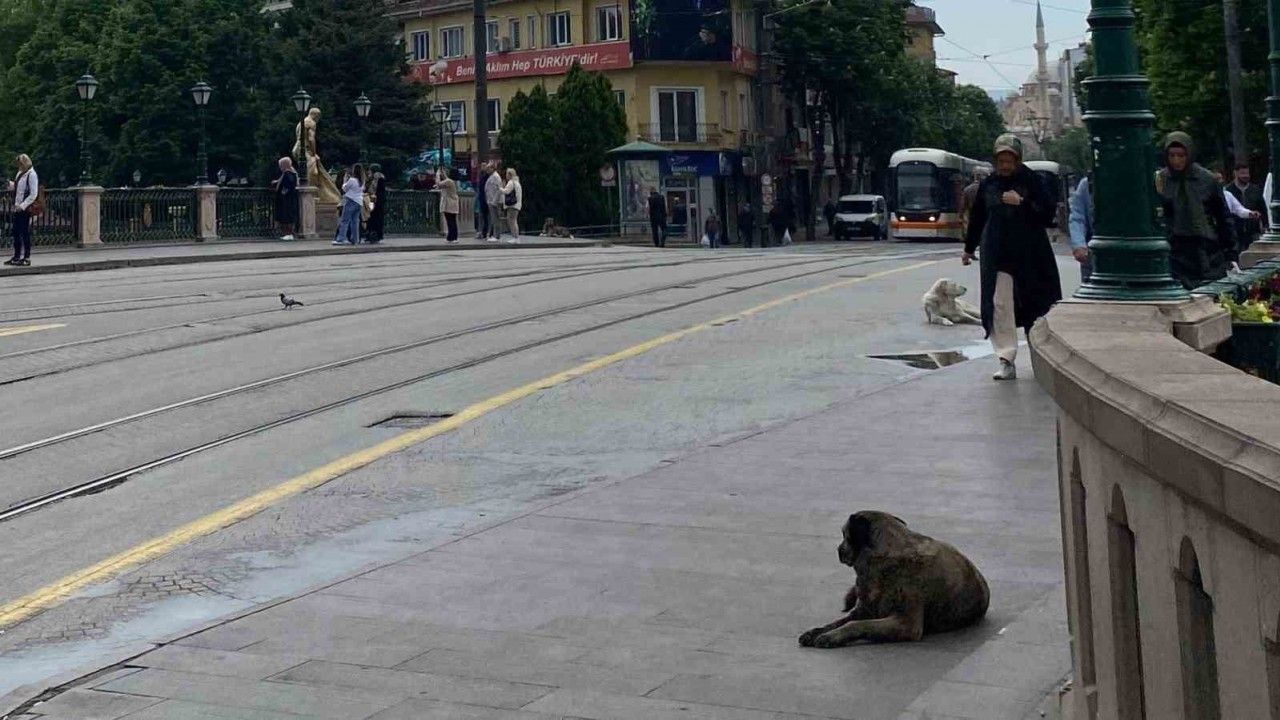 Güne yağmurla başlayan Eskişehir’in merkezi noktalarındaki durgunluk dikkat çekerken, sokak hayvanları oluşan sessizliğin tadını çıkardı.