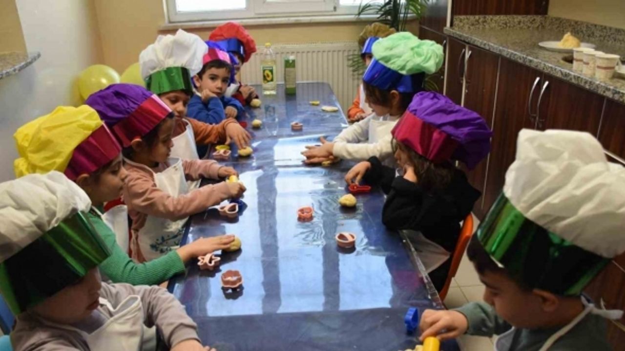 Çocuklar Pastacılık Kursunda, tatlı ve tuzlu pasta, kurabiye, kek, poğaça yapımını öğrenirken pasta malzemeleri gibi konularda da eğitim alıyor. Pastacılık Kursu Eğitmeni Meliha Gülkan, “Eğitim anlayışımız okul öncesi öğrencilerimizin tüm gelişim alanlarını destekleyerek, ilişsel, psikomotor, dil, sosyal olarak gelişmesi, öz bakım becerilerinin kazandırılması, ilkokula hazırlanmasıdır. Aile katılımı etkinlikleriyle veliyi de eğitime katarak çocuklarıyla daha kaliteli zaman geçirmelerine destek oluyoruz. Sosyal tesisimizde çocuklara İngilizce, jimnastik, robotik kodlama dersleri ayrıca kurabiye atölyesinde her hafta ailelerle birlikte kurabiye, kek, pizza, poğaça gibi çocukların yaparken zevk alacağı ayrıca sağlıklı bir şekilde beslenebileceği yiyecekler hazırlıyoruz. Böylece çocuklar kurabiye atölyesinde; iş birliği, paylaşma, yardımlaşma, hoşgörü, ürün ortaya koyma duygularını yaşıyor, yaparak yaşayarak öğreniyor ve velileriyle birlikte güzel zaman geçiriyor. Tüm bu fırsatlar öğrenciler için okul öncesi dönemin verimli geçmesini ve kendine güvenen, yetenekli ve başarılı öğrencilerin yetişmesini sağlıyor” ifadelerini kullandı.