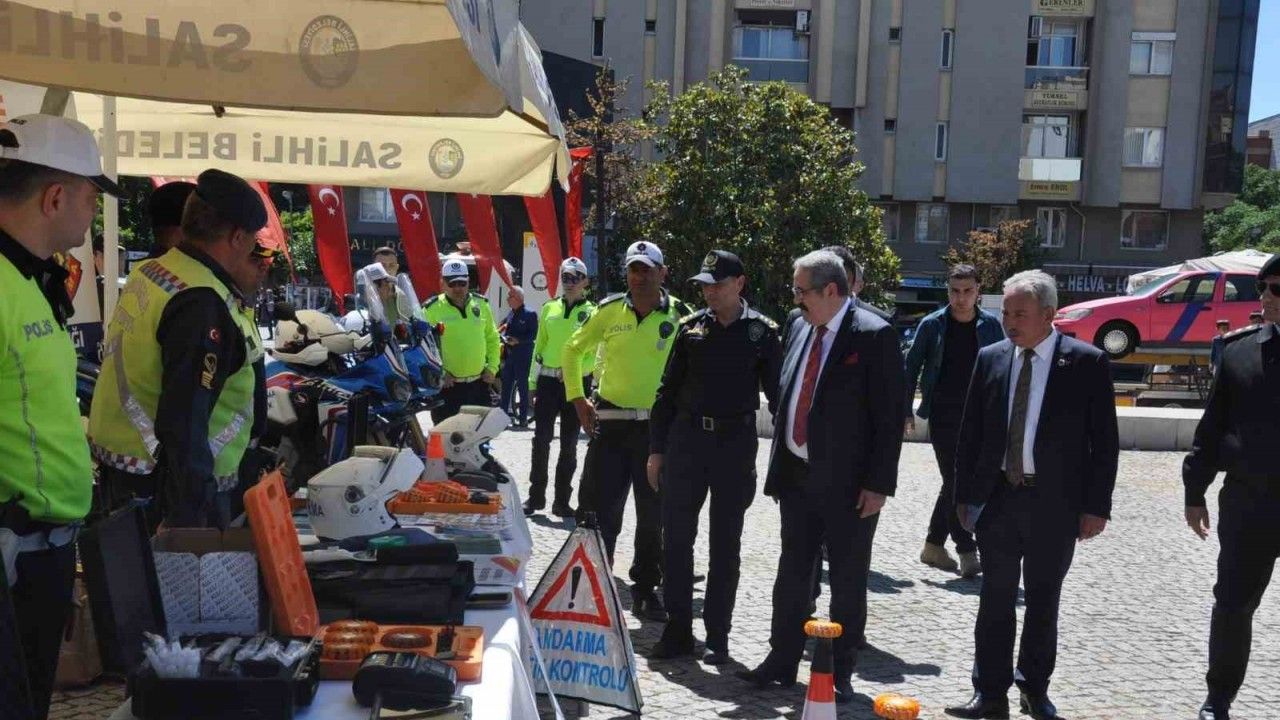 Salihli ilçe Jandarma Komutanlığı, İlçe Emniyet Müdürlüğü Trafik birimlerince Trafik Haftası etkinlikleri kapsamında Milli Birlik ve Demokrasi Meydanında etkinlik düzenlendi. Etkinlikte Salihli Kaymakamı Mehmet Kamil Sağlam, trafik ekiplerinden, trafikte kullanılan ekipmanlar hakkında bilgiler alırken, protokol üyeleri ile birlikte öğrencilere kırmızı düdük ile bilgilendirici trafik dergileri dağıttı.