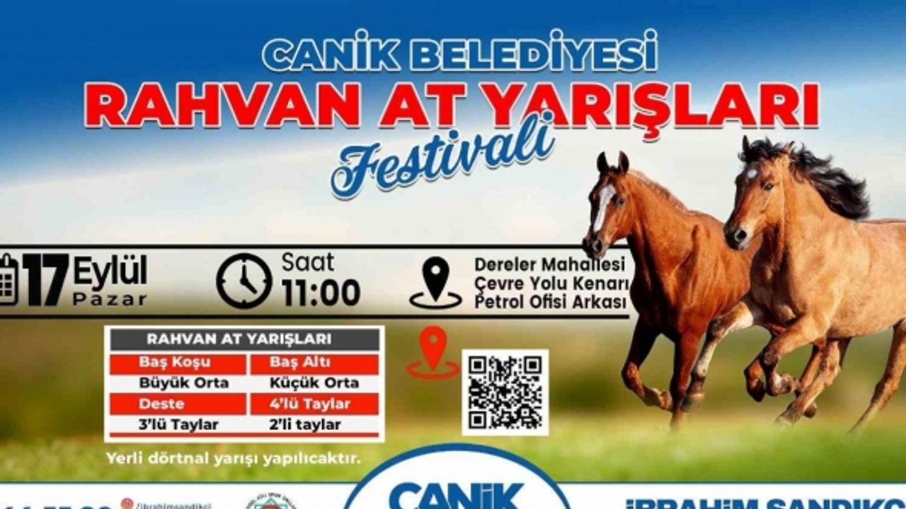 Samsun Canik Belediyesi tarafından düzenlenen "Canik Rahvan At Yarışları Festivali" 17 Eylül Pazar günü yapılacak.