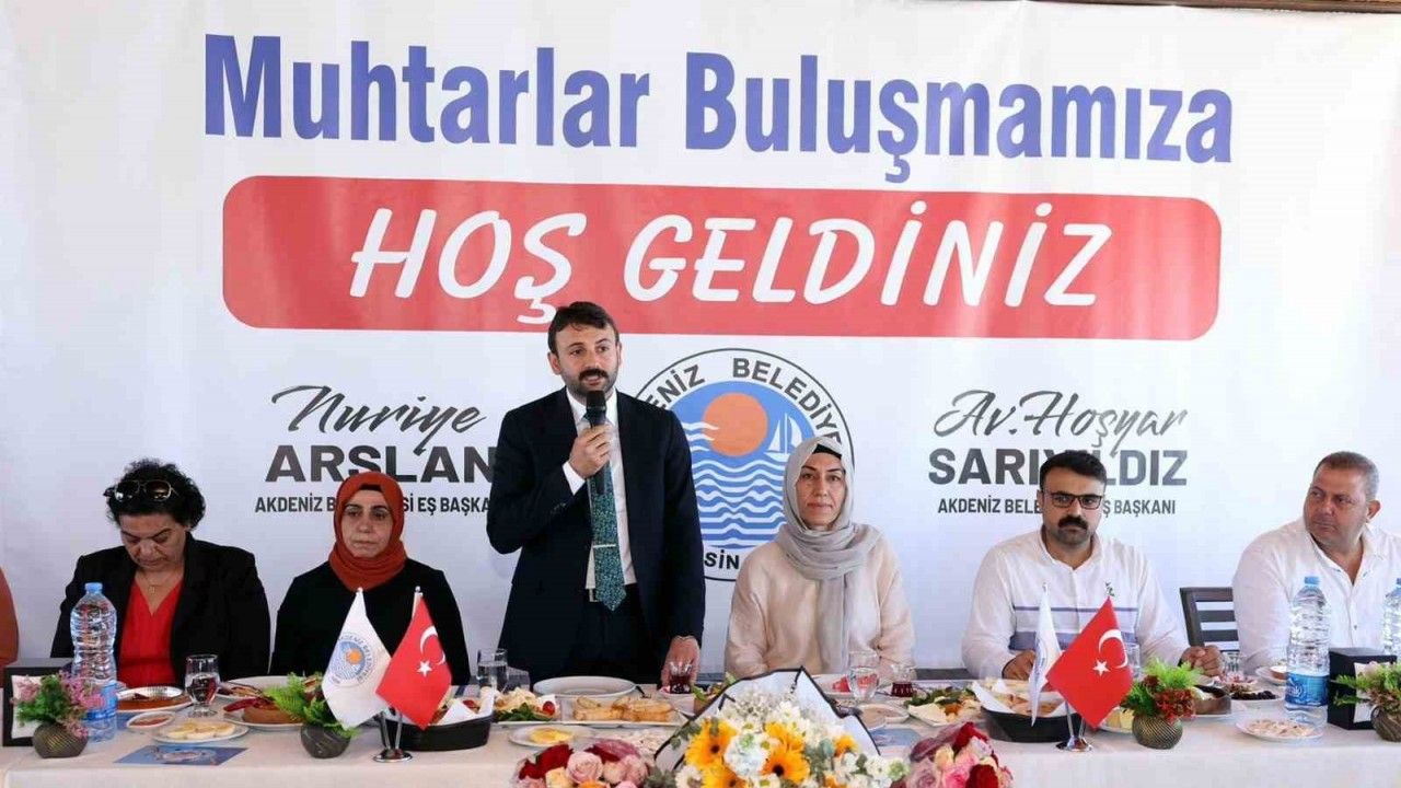 Akdeniz Belediye Başkanı Hoşyar Sarıyıldız, başkan yardımcıları, meclis üyeleri ile müdürlerin katılımıyla, ilçeye bağlı 65 mahallenin muhtarları ile bir araya geldi.