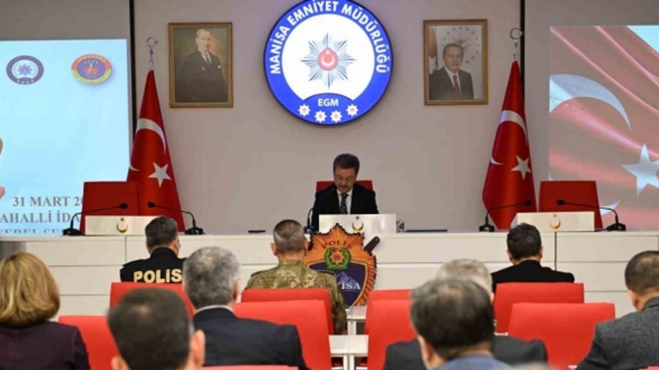 Manisa İl Emniyet Müdürlüğü Toplantı Salonunda yapılan toplantıya Vali Enver Ünlü’nün yanı sıra İl Jandarma Komutanı Tuğgeneral Zafer Tombul, Vali Yardımcıları Mustafa Yıldız ve Aydın Memük, İl Emniyet Müdürü Fahri Aktaş, kaymakamlar ve ilgililer katıldı.