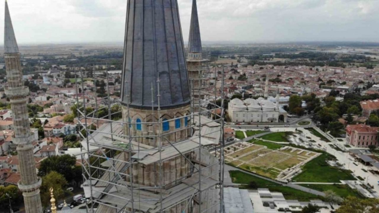 Diğer taraftan minarelerin güçlendirme çalışmaları sürdüğünü aktaran Saraç, “Minarelerimizin külah altında bulunan ve günümüze sadece bir tanesi ulaşan çinileri orijinaline uygun olarak ürettik ve iki minaremizde yerine monte etmiş durumdayız. Onarımı tamamlanan bir minaremizin iskelesini de en kısa sürede sökmeye başlayacağız. Avluda bulunan şadırvanın onarımını tamamlamış bulunuyoruz. Caminin önemli elemanlarından olan kündekari kapı ve pencere kepenklerinin temizlik ve restorasyon çalışmalarının devam etmektedir. Restorasyon boyunca cami ziyarete ve ibadete açıktır. Selimiye Camii meydan düzenleme çalışmaları daha önceki yıllarda Çevre, Şehircilik ve İklim Değişikliği Bakanlığı tarafından tamamlanmıştır. Tüm bu çalışmalarla Edirne’nin simgesi Selimiye Camisi’nin restorasyonunun da tamamlanmasının ardından en kısa sürede yeniden hem ibadette hem de iç ve dış turizme kazandırılacaktır” diye konuştu.
