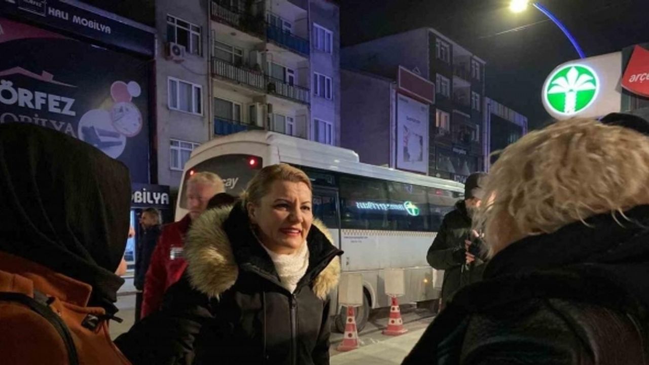 İzmit Belediye Başkanı Fatma Kaplan Hürriyet ve ekibi, işe gitmek için servis bekleyen işçilere poğaça ve meyve suyu ikram etti.