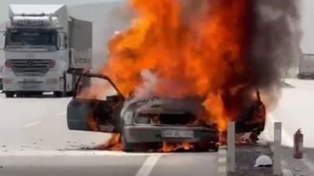 Konya’da seyir halindeki bir otomobil alev alev yandı.