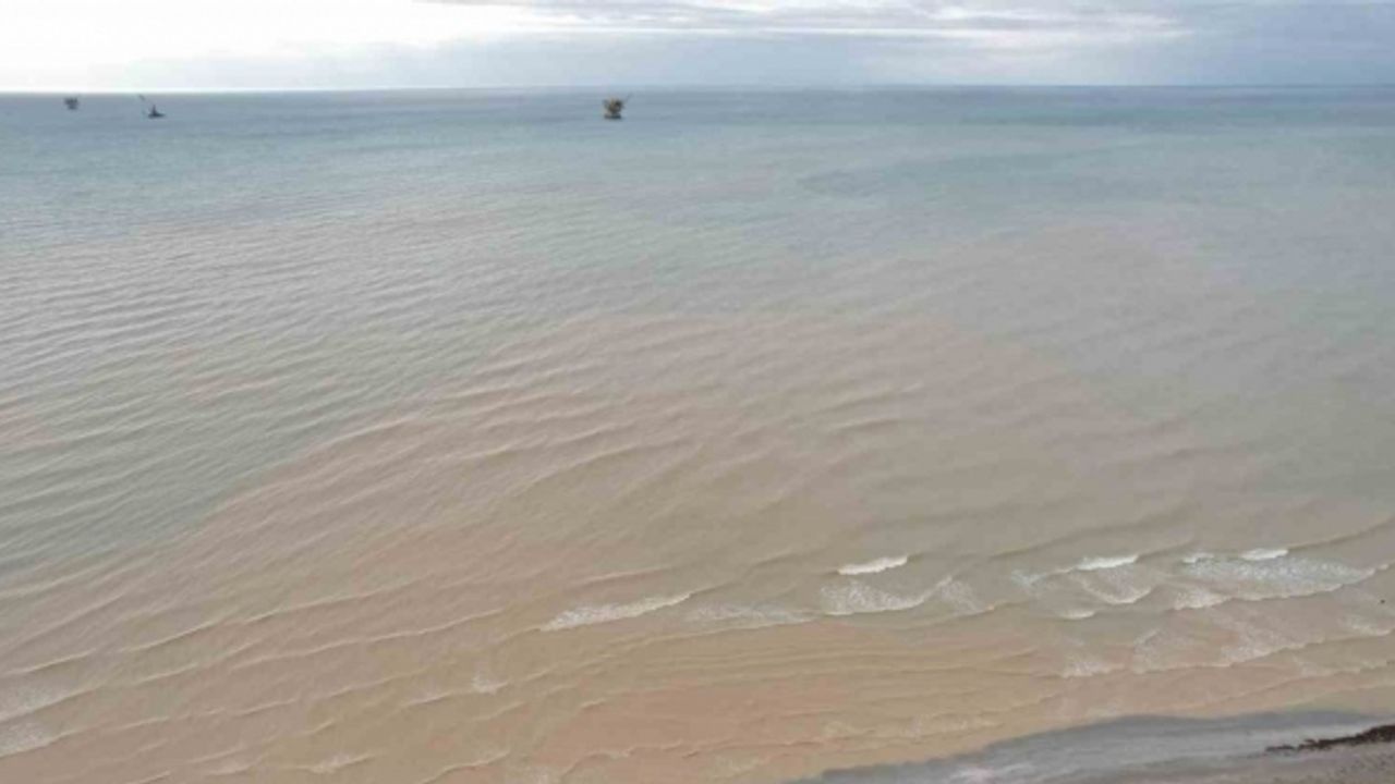 Taşkın sonrasında sular denize doğru akmaya başladı. Semizkumlar Sahili’ne akan sular nedeniyle denizin rengi de değişti. Kıyı kesimi komple kahverengiye dönen deniz, dron ile havadan görüntülendi.