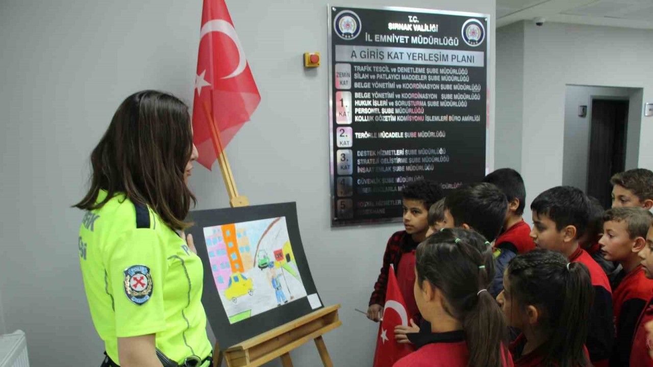 Trafik haftası kutlamaları çerçevesinde ilkokul öğrencileri Şırnak İl Emniyet Müdürlüğü Trafik Şube Müdürlüğünü ziyaret etti.