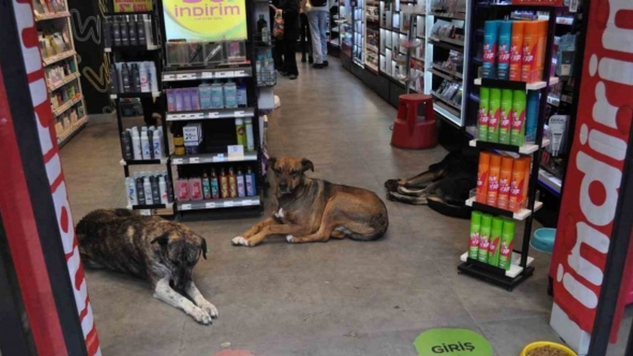 Eskişehir esnafı hava sıcaklıklarının düşmesiyle birlikte üşüyerek işletmelerine sığınmak isteyen köpeklere kapısını açtı.