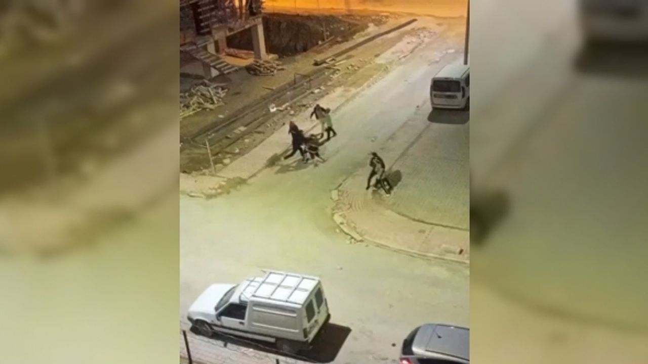 Görüntülerde, iki grubun karşılaşması üzerine tekme ve yumruklarla birbirine saldırdığı ve taraflardan birinin yere düşmesi sonucu bir kişinin üzerinde yumruklarken diğer kişinin ise tekme attığı görülüyor. Kavganın yoldan geçen bir otomobilden inen 2 kişinin araya girmesiyle son bulduğu görülüyor.