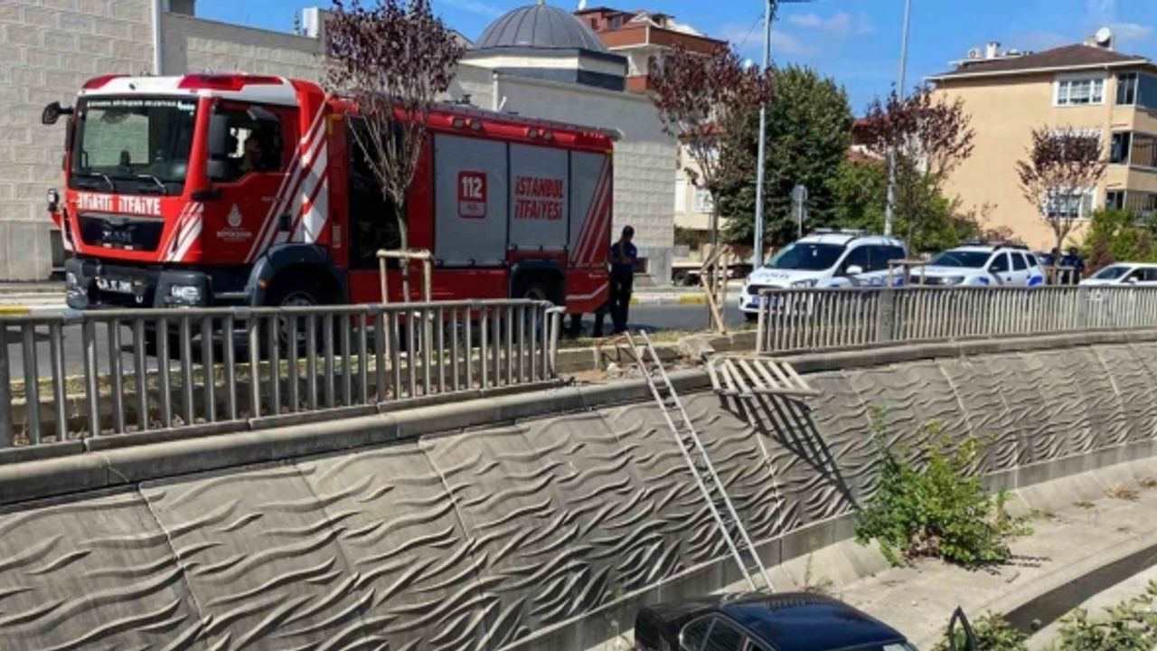 Sultanbeyli’de ehliyetsiz sürücünün kontrolünden çıkan otomobil kanala uçtu. Kazada sürücü burnu bile kanamadan kurtuldu.