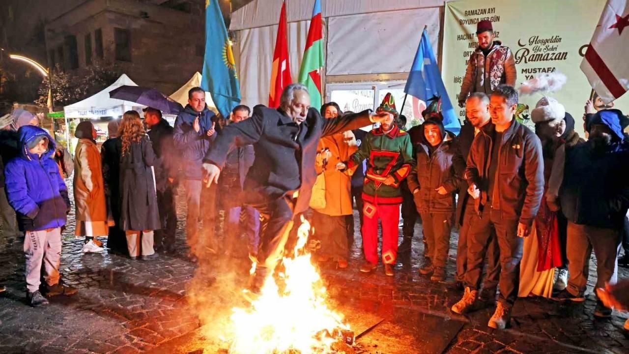 Program sonunda Başkan Yalçın, yakılan ateşin üzerinden atlayıp demir dövdü.