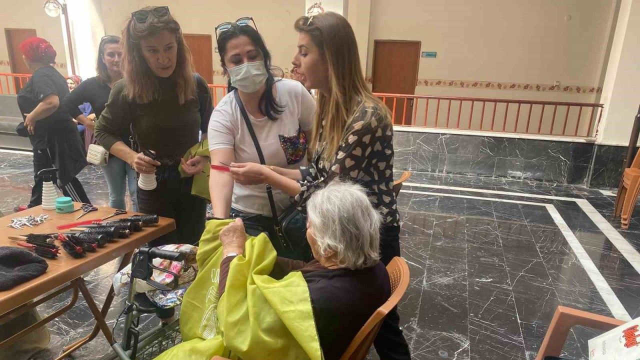Öğretmen ve kursiyerlerden oluşan yaklaşık 40 kişilik grup, Huzurevinde kalan yaşlıların Anneler Gününü kutlayarak önce kendi ördükleri sepetleri hediye etti, ardından da saçlarını keserek bakımlarını yaptı.