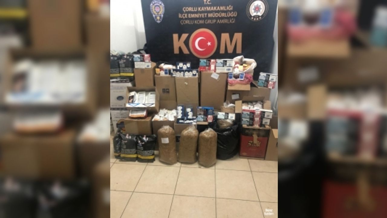 Tekirdağ İl Emniyet Müdürlüğü Çorlu KOM Grup Amirliğince kaçakçılık suçlarıyla mücadele kapsamında Çerkezköy ve Kapaklı ilçelerinde 9 işyerine operasyon düzenlendi. Operasyon kapsamında işyerlerinde yapılan aramalarda, 121 bin 600 adet içi tütüne doldurulmuş makaron, 134.4 kilogram açık kıyılmış tütün, 7.5 kilogram nargile tütünü, 3 bin 500 adet bandrolsüz sigara sarma kağıdı, 87 adet mükerrer kullanıldığı değerlendirilen TAPDK bandrollü ele geçirildi. Operasyonda toplamda 9 şüpheli şahıs yakalandı.