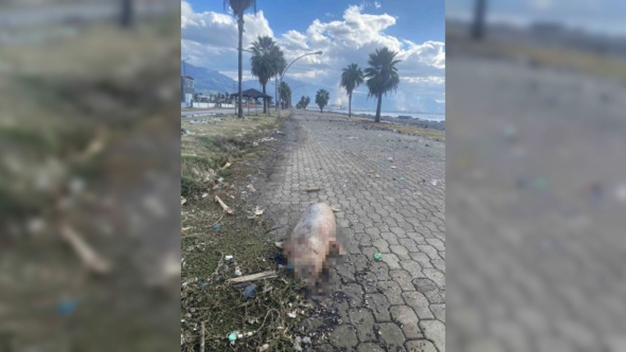 Deniz seviyesinin yükseldiği Hatay’ın Dörtyol ilçesinde kıyıya telef olmuş Akdeniz foku vurdu.