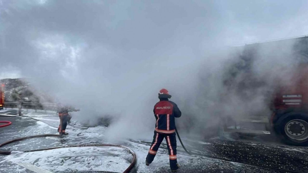Yangını gören Ali Şahin isimli vatandaş, tırın bir anda yanmaya başladığını, itfaiyeye haber verdiklerini söyledi.