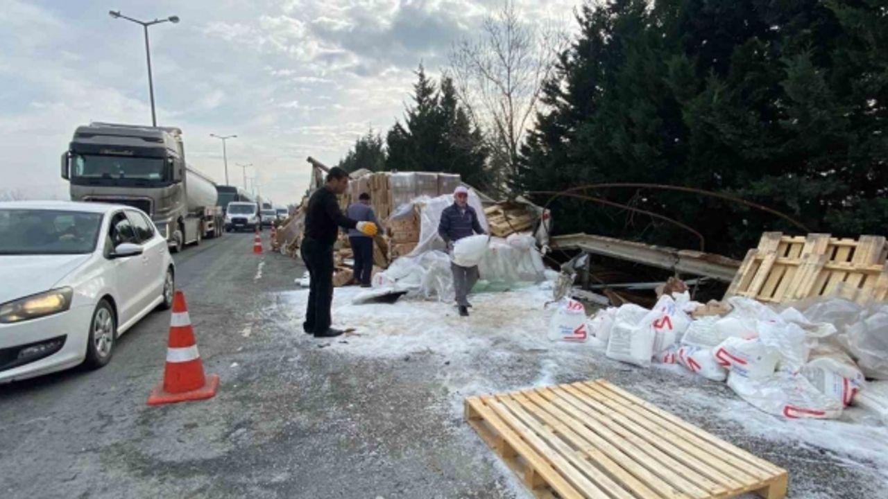 Kaza sebebiyle Tem Otoyolu’nun İstanbul istikametine trafik yoğunluğu oluştu. Devrilen tırın vinç vasıtasıyla kaldırılmasıyla, araç geçişleri 2 şeritten kontrollü olarak sağlandı. Yola dökülen plastik ham madde ve streç film malzemelerinin kaldırılma çalışmaları sürüyor.