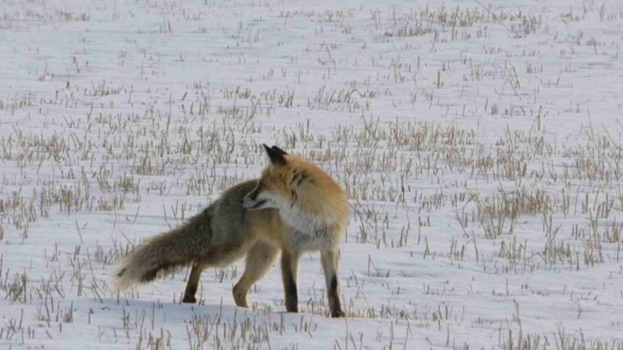 Ardahan’da etkili olan kar yağışının ardından aç kalan bir tilkinin fare avı objektiflere yansıdı.