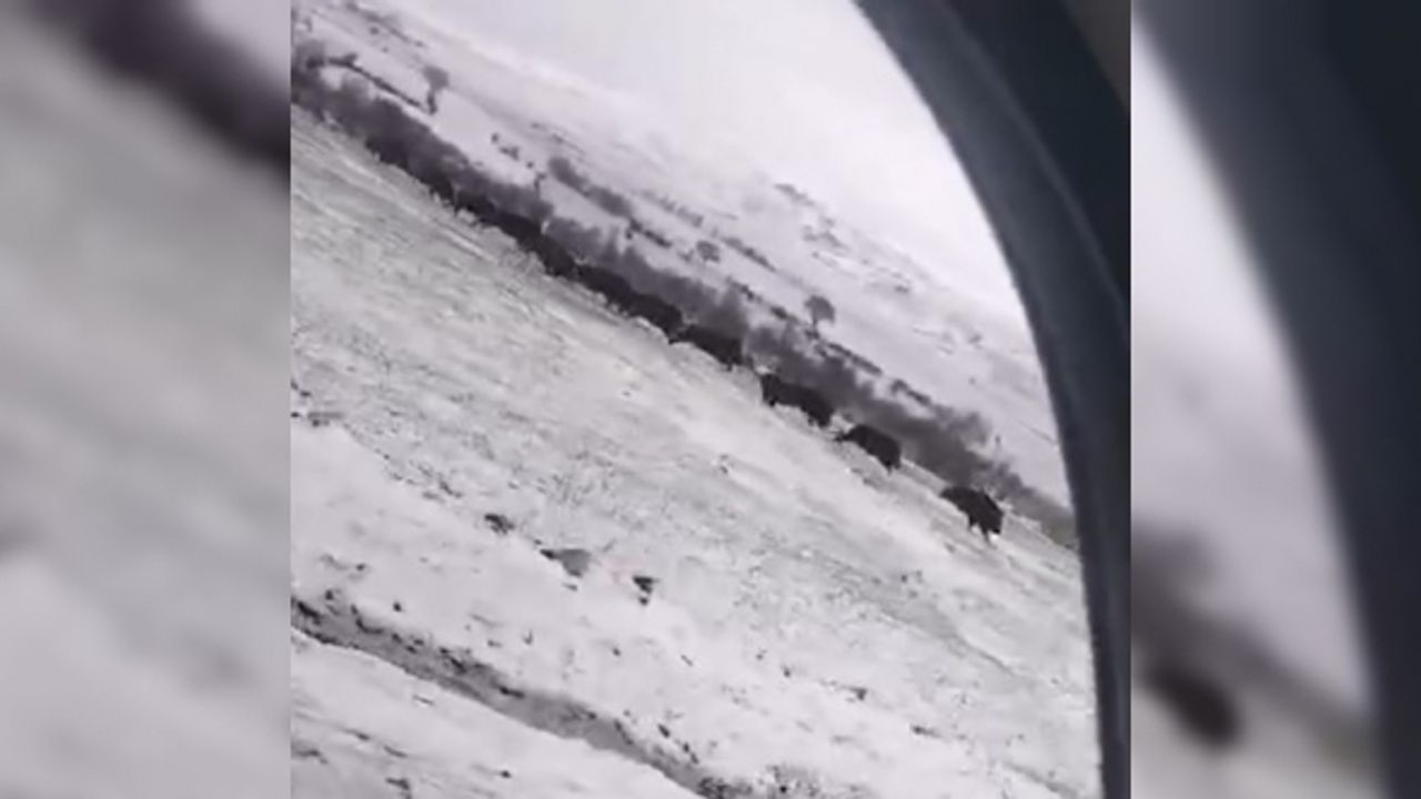 Tokat’ta etkili olan kar yağışı nedeniyle yaban hayvanları yiyecek bulmakta zorlanıyor. Kızılcin köyünden kendi aracıyla Zile ilçesine giden Erkan Özkara, Yıldıztepe Barajı bölgesinde domuz sürüsünü gördü. Özkara, karlı bölgede toprak yolda ilerleyen domuz sürüsünü cep telefonu kamerası ile kayda aldı. Yiyecek aradıkları tahmin edilen sürü aracın önünde geçerek hızla uzaklaştı.
