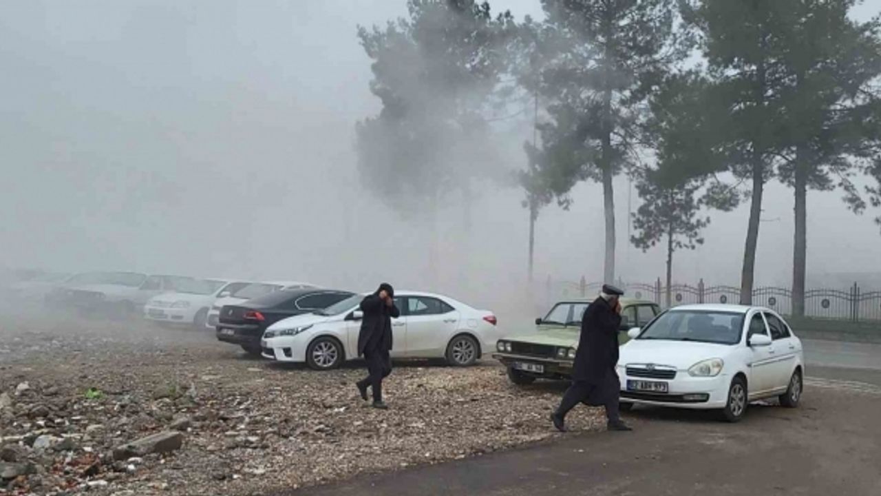 Adıyaman’da yıkılan binanın çıkardığı toz bulutu nedeniyle trafikte göz gözü görmedi. Araçlar aniden durdu, yayalar kaçarken kazaya neden oluyordu.