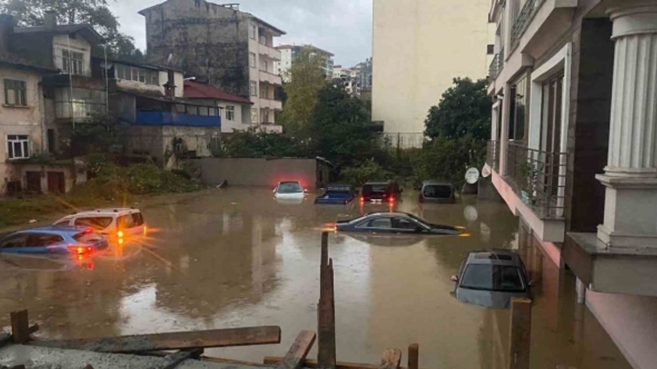 Trabzon’un Sürmene ilçesinde etkili olan sağanak yağış sokaklar göle, araçlar mahsur kaldı.
