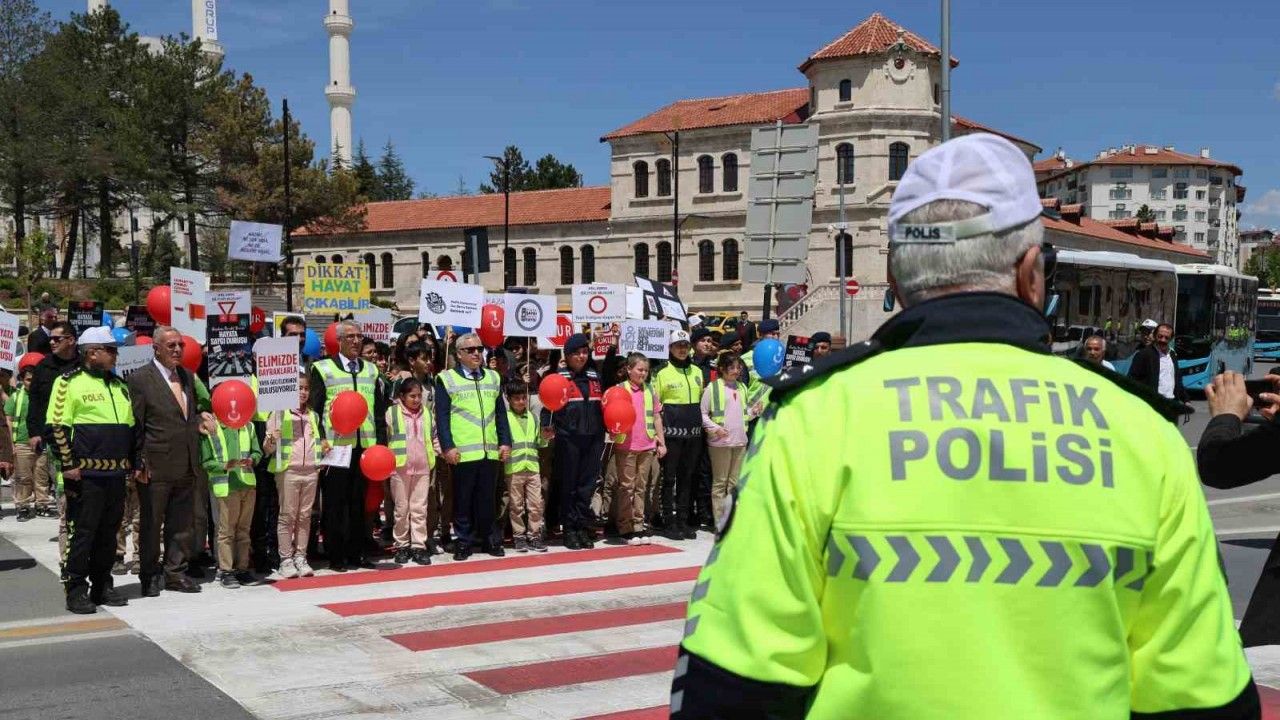 Sivas’ta 4-10 Mayıs Trafik Haftası nedeniyle tarihi Kent Meydanı’nda ‘Yayalar Kırmızı Çizgimiz’ temalı etkinlik düzenlendi. Sivas İl Emniyet Müdürlüğü ve İl Jandarma Komutanlığı’na bağlı trafik ekipleri öğrencilere balon dağıttı. Öğrenciler ve vatandaşlara trafik kuralları bilincini aşılamayı amaçlayan etkinlikte trafik levhaları anlatıldı.