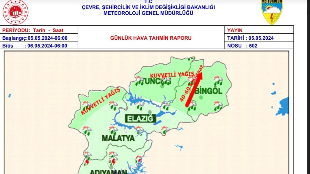 Meteoroloji 13. Bölge Müdürlüğü’nden yapılan açıklamada, “Tunceli çevrelerinde beklenen kuvvetli sağanak yağışların, akşam saatlerinden sonra sıcaklıklardaki düşmeye bağlı olarak bölgenin yüksek kesimlerinde (1800 m üzeri) karla karışık yağmur ve yer yer kar şeklinde olması tahmin edildiğinden dolayı meydana gelebilecek sel, su baskını, heyelan, kar yağışı olan yerlerde tipi şeklinde yağış ve ulaşımda aksamalar gibi olumsuzluklara karşı dikkatli ve tedbirli olunması gerekmektedir” denildi.
