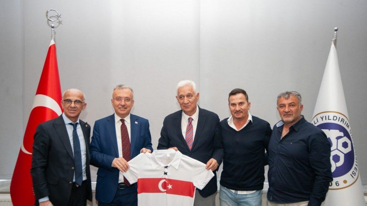 “Futbolun Efsaneleri Konuşuyor” paneli için Erzincan Binali yıldırım Üniversitesine gelen Türkiye Futbol Federasyonu Genç Milli Takımlar ve Futbol Gelişim Direktörlüğü Koordinatörü ve Fenerbahçe’nin eski futbolcusu Oğuz Çetin, Galatasaray’ın unutulmaz isimlerinden Ergün Penbe ve Türkiye Futbol Antrenörleri Derneği Genel Başkanı İsmail Dilber, TÜFAD Erzincan Şube Başkanı Yılmaz Toyran ve beraberindekiler Erzincan Binali Yıldırım Üniversitesi Rektörü Prof. Dr. Akın Levent’i ziyaret etti.