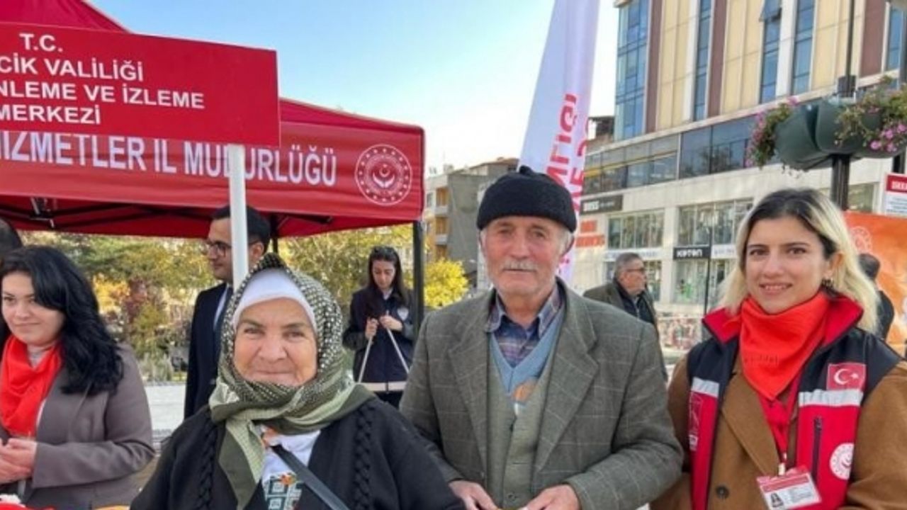 Bilecik’te kadına şiddete yönelik farkındalık çalışması kapsamında kurulan stanta gelen yaşlı çift "Kadına şiddete sıfır tolerans" dedi.