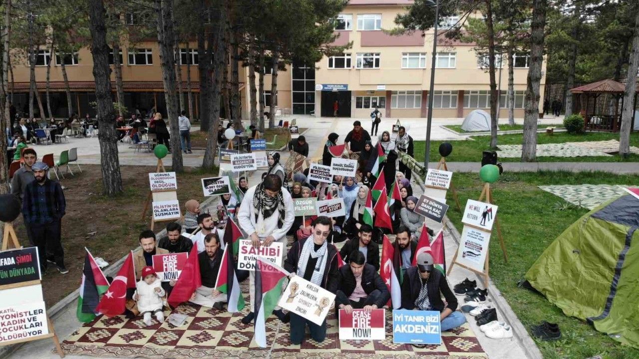İsrail’i protesto etmek üzere Hitit Üniversitesi Teknik Bilimler Meslek Yüksek Okulu’nda bir araya gelen üniversite öğrencileri ve sivil toplum kuruluşlarının temsilcileri Amerika’daki zulmü protesto eden öğrencilere destek verirken Gazze’de yaşananları kınadı.