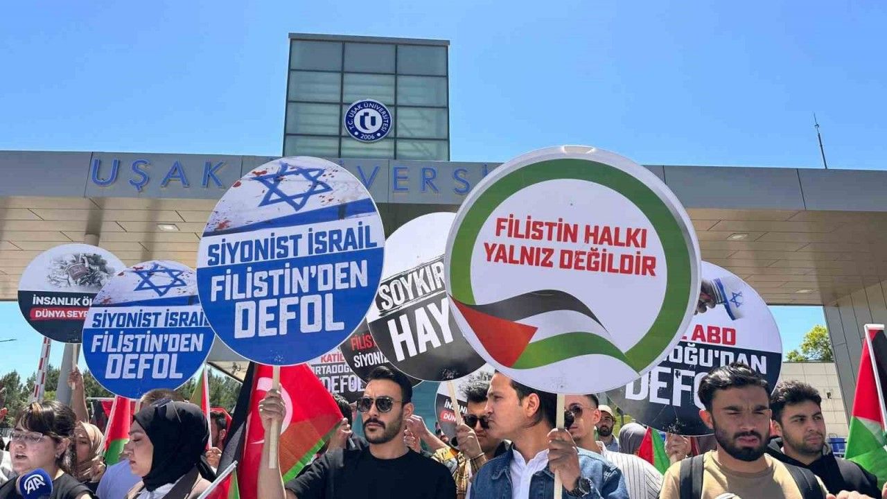 ABD ve Avrupa’nın çeşitli üniversitelerinde gerçekleştirilen Filistin protestolarına destek vermek için Uşak Üniversitesi öğrencileri basın açıklaması gerçekleştirdi.