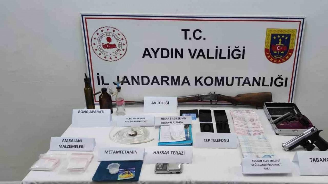Aydın İl Jandarma Komutanlığı koordinesinde il genelinde uyuşturucu ile mücadele çalışmaları aralıksız devam ediyor. Edinilen bilgiye göre Kuşadası Cumhuriyet Başsavcılığı koordinesinde Aydın İl Jandarma Komutanlığınca "Uyuşturucu Madde Ticareti" suçunu örgütlü olarak işlediği tespit edilen şüphelilere yönelik operasyon gerçekleştirildi. Jandarma ekiplerince belirlenen adreslere yapılan baskında örgüt lideri ile birlikte 4 şüpheli yakalandı. Yapılan aramalarda ise uyuşturucu, silah ve uyuşturucudan temin edildiği belirlenen para ele geçirildi. Gözaltına alınan şüpheliler işlemlerinin ardından adli makamlara sevk edilirken, örgüt lideri E.P. ile Ö.K. ve Y.A tutuklanarak cezaevine gönderildi.
