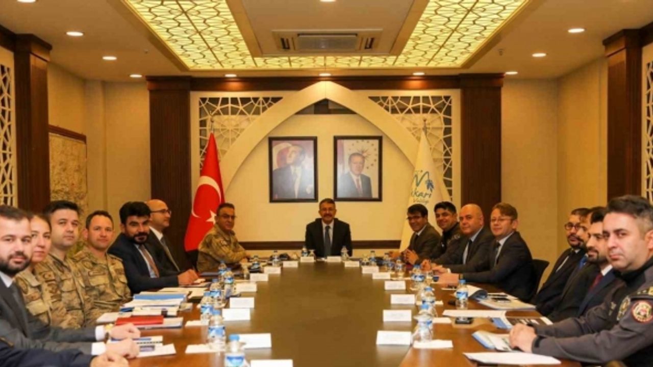 Vali Ali Çelik, İl Jandarma Komutanı, İl Emniyet Müdürü ve ilgili birim yöneticileri ile birlikte asayiş toplantısı yaptı. Toplantıya İl Jandarma Komutanı Tuğgeneral Necip Çarıkcıoğlu, İl Emniyet Müdürü İdris Yılmaz ve ilgili birim yöneticileri katıldı. Vali Ali Çelik, 19-25 Kasım tarihleri arasında Hakkari genelinde meydana gelen olayların analiz ve değerlendirmelerine yönelik hazırlanan brifingleri inceledi. Vali Çelik, "İlimizde meydana gelen hırsızlık olaylarının yüzde 40, dolandırıcılık olaylarının yüzde 67 ve aile içi kadına karşı şiddet olaylarının yüzde 36 oranında haftalık bazda azalmasında emeği geçen tüm kolluk görevlilerimize özverili çalışmalarından dolayı teşekkür ederim” dedi.