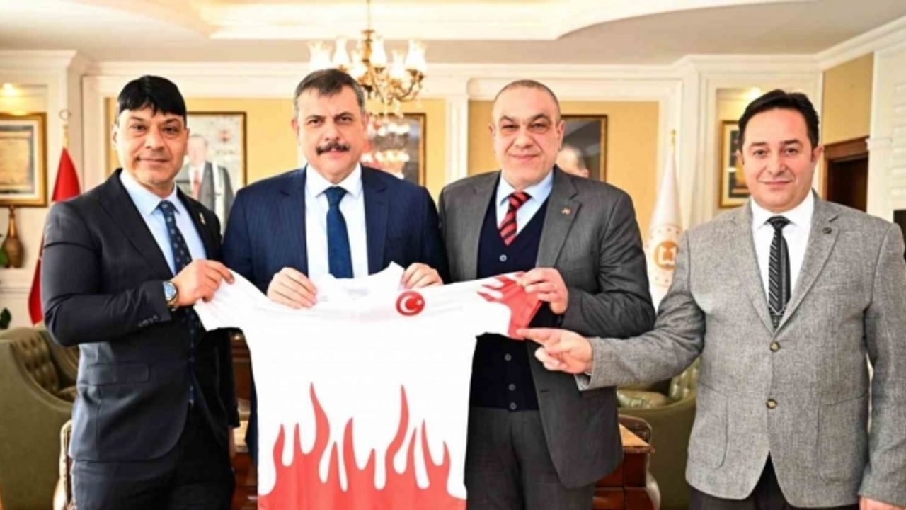 Vali Çiftçi’yi Erzurum’da düzenlenen sportif faaliyetler hakkında bilgilendiren Baş Antrenör Sönmez ve beraberindeki heyet, günün anısına Vali Çiftçi’ye Milli Takım forması hediye etti.