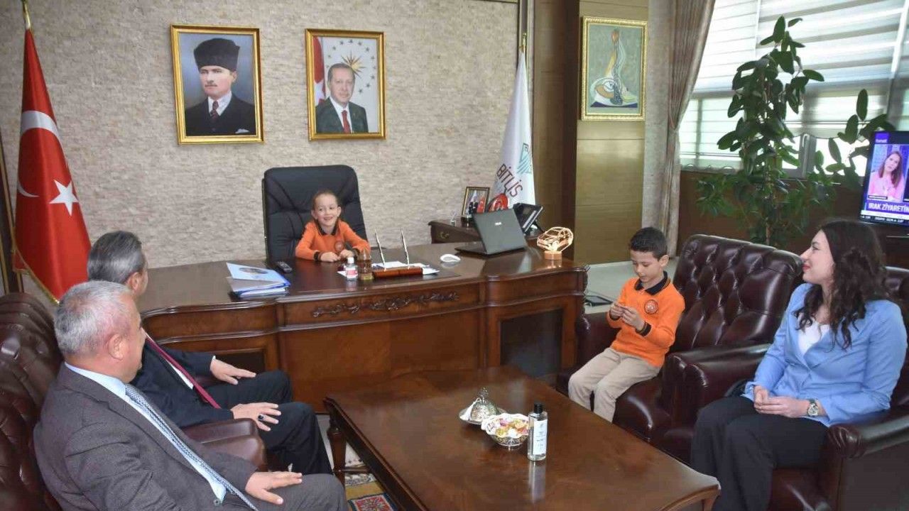 Bitlis’te 23 Nisan Ulusal Egemenlik ve Çocuk Bayramı nedeniyle Bitlis Valisi Erol Karaömeroğlu’nun koltuğuna oturan öğrenciler park isteğinde bulundular.