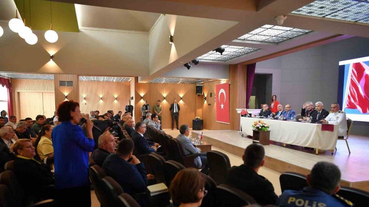 Cunda Mesleki ve Teknik Anadolu Lisesi’nde gerçekleştirilen toplantıya Vali İsmail Ustaoğlu’nun yanı sıra İl Jandarma Komutanı Tümg. Nurettin Alkan, Ayvalık Kaymakamı Hasan Yaman, İl Emniyet Müdürü Hasan Yiğit, Sahil Güvenlik Kuzey Ege Grup Komutanı SG. Yb. Emrah Kadir Çakır, Ayvalık Belediye Başkanı Mesut Ergin, kurumların bölge ve il müdürleri, muhtarlar ve ilgililer katıldı.