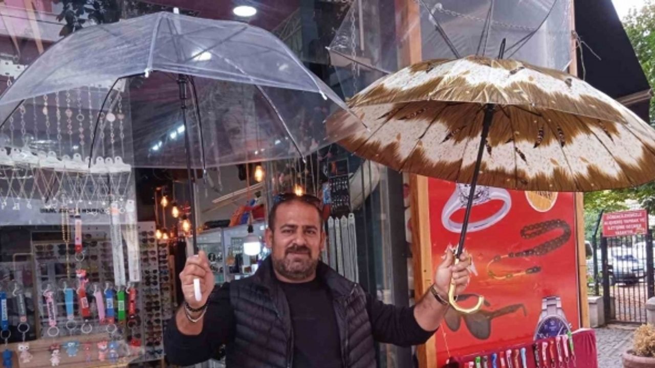 Eskişehir’de uzun yıllardır esnaflık yapan Tamer Yetişkul, yağışların artmasıyla şemsiye stokları yapmaya başladıklarını dile getirdi. Şemsiye fiyatları hakkında da bilgi veren Yetişkul, “Kış bu sene erken geldi, yağmurlar başladı. Geçtiğimiz yıllara göre şemsiye satışları bu yıl artışta. Son günlerde çok şemsiye sattık. Şemsiye çeşitlerimiz de çok. Yağmur yağınca şemsiyeye talep yoğun oluyor. Bu sene bol yağmur bekliyoruz inşallah. Şemsiye stoklarımızı hazırlıyoruz. 12 koli çeşitli modelde şemsiyemizi aldık. Kadın, erkek ve çocuk için ayrı şemsiye satıyoruz. Bardak, şeffaf, baston, yarı otomatik, tam otomatik şeklinde şemsiyelerimiz var. Fiyatlar 95 ile 500 lira arasında değişiyor” ifadelerini kullandı.