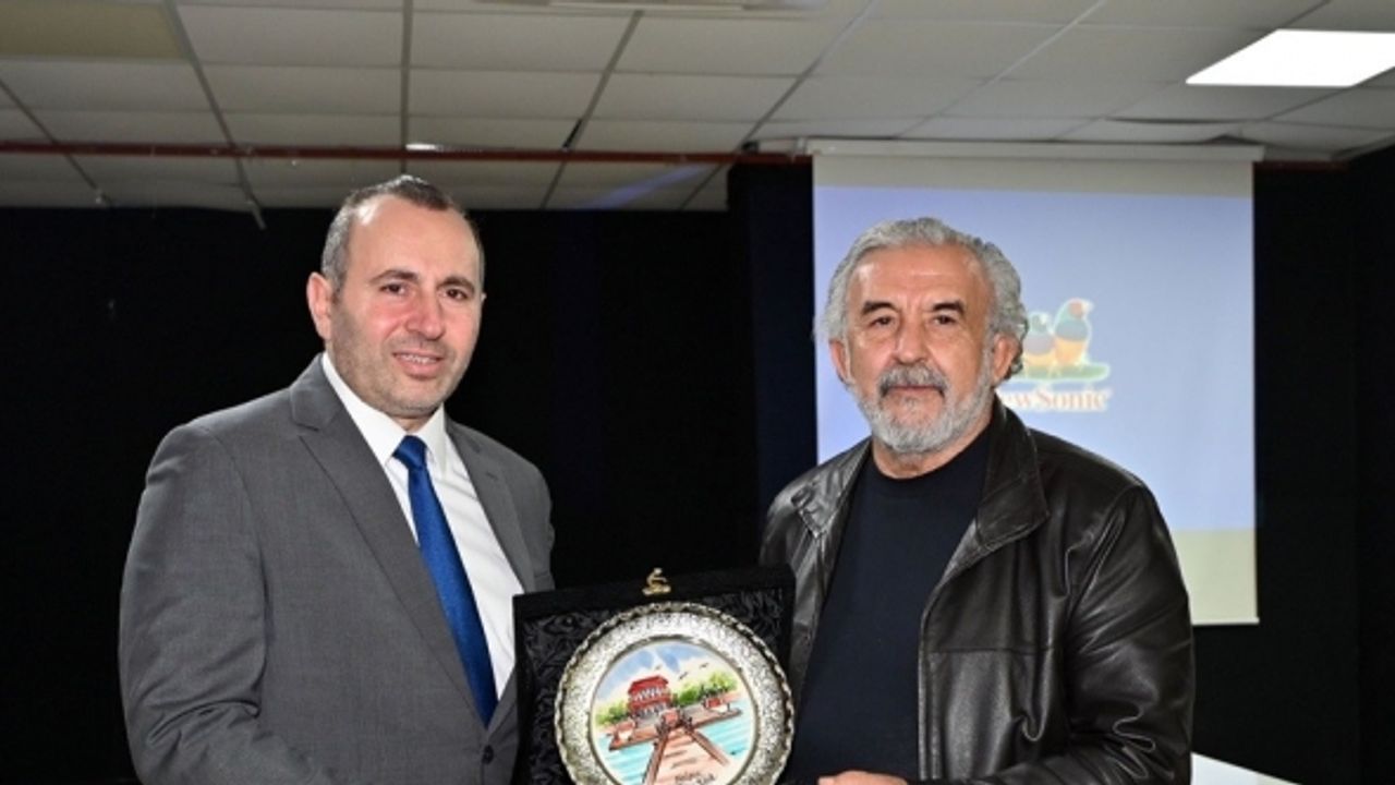 Söyleşi programı sonrası Ziraat Yüksek Mühendisi, Sosyal Girişimci, Düşünce Yönetmeni ve Çiftçi olan Tanfer Dinler’e teşekkür plaketi takdim eden Başkan Tutuk; “Gördüm ki öğrencilerimiz sizin ve diğer katılımcıların bilgileriyle geçtiğimiz günlerde ‘Su Ayak İziniz Kaç Numara’ isimli panelinde yapılan söyleşilerden feyz almışlar. Siz ve diğer katılımcılarımızın konuşmalarından etkilendiklerini, öğrendiklerini resimleyerek çok güzel eserler yansıtmışlar. Şimdi eserlerini bizlerle ve sanatseverlere sergileyerek sundular. Size de bugünkü söyleşi programınızdan dolayı teşekkür ediyor, şehrimizde ağırlamaktan dolayı mutluluk duyuyorum” dedi.