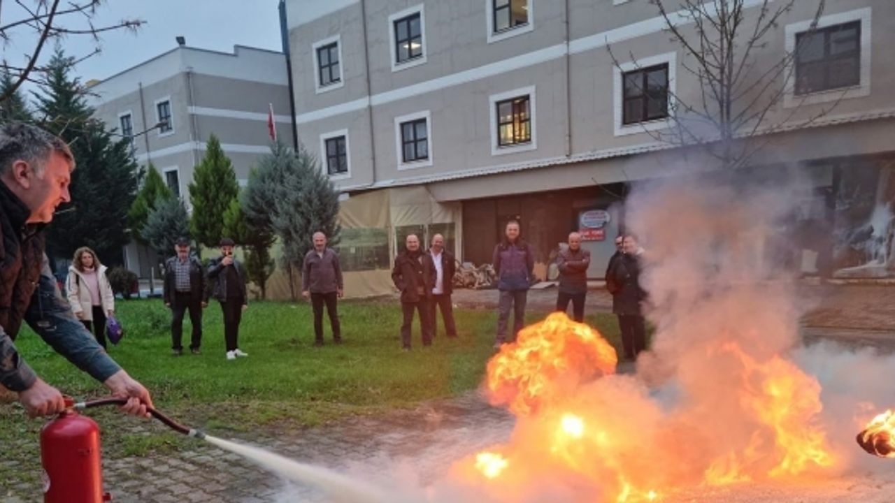 Eğitim sonunda ise yangın tatbikatı yapıldı. Özel idarenin bahçesinde yakılan ateş çalışanlar tarafından güvenli bir şekilde söndürülmesiyle tatbikat son buldu.
