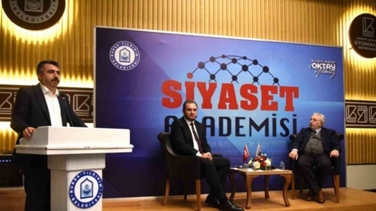 Yıldırım’ın ilim kenti kimliğini güçlendirecek işler yapmaya gayret ettiklerini ifade eden Yıldırım Belediye Başkanı Oktay Yılmaz, “Siyaset Akademisi projesi de bu gayretimizin bir meyvesidir. İnşallah 8 hafta boyunca birbirinden kıymetli hocalarımız gençlerimizle buluşacak ve onlara yeni ufuklar açacak. Bu akademinin kentimizin entelektüel ve ilmi birikimine önemli katkı sağlayacağına inanıyorum. Adeta bir okul görevi görecek akademimiz, gençlerimizin yeni bakış açıları elde etmesi için bir fırsat” dedi.