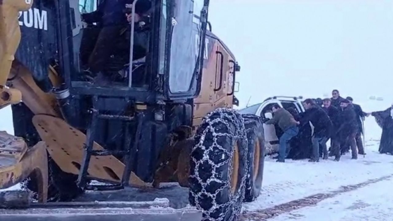 Erzurum - Tekman karayolunda etkili olan yoğun kar yağışı ve tipi sürücüleri zor durumda bıraktı. Taziye ziyareti için Çatak Mahallesine giden vatandaşlar yolda kaldı. Şarampole kayan otomobil Tekman Belediyesine ait iş makinasının yardımıyla kurtarıldı. İş makinasına bağlanarak çekilen otomobil yola çıkarıldı.