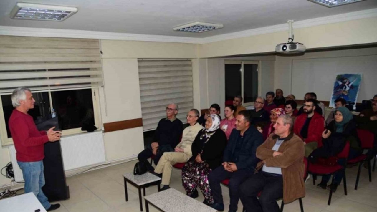 Sökeli Fotoğrafçı Sabih Güzel, “Ben Söke’de oturuyorum. 1976’dan beri fotoğraf çekiyorum. Ama asıl fotoğraf çekmeye başlamam 2009’da emekli olmamla birlikte oldu. Bir derdim var diyerek bir şeyler anlatmaya çalışmak için fotoğraf çekiyorum. Genellikle belgesel türünde fotoğraf çekmeye çalışıyorum. Çalıştığım konular da genellikle Türk Kültürü üzerine. Yani bizim Ege’nin deve güreşleri, yağlı güreşleri, rahvan at yarışları, sudan koyun atlatma ve göç olayı. Türkler göçebe bir toplum. Her ne kadar Anadolu’ya yerleşsek de halen göçerliğimiz devam ediyor. 2016-2018 yılları arasında 2 yıllık bir çalışmayla bu göçerleri fotoğrafladım. Kışlakları olan Didim’den başlayan ve yazlıkları olan Isparta-Uluborlu, Afyon, Uşak gibi yerlere yaya olarak gerçekleştirdikleri göçlerini kadrajıma aldım. Yaylalarda ürettikleri peynirlerden keçilerinin satışlarına kadar her şeyi takip ettim. 2 yıl süren çalışmayı bir sonraki nesillere kalması için fotoğrafladım. Bu çalışmamın sunumunu NAFOD üyeleri ve fotoğraflarıma konu olan Özden ve Koşar aileleri ile birlikte izledik. Bu akşam hep birlikte bu çalışmayı izlediğimiz için çok mutluyum” dedi.